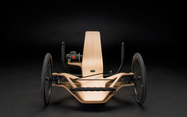 Made by students, a recumbent style electric vehicle powered by a single cordless drill and wood. It has a graceful artistic look and an appealing design that strikes the feeling of a soap box racer mixed with awesome. It can be used to get somewhere with some practical use, and still be fun. Personally I would like to see the addition of a bicycle drive-train to make either pedaling or electric an option. For more, visit http://www.rennholz.com/bilder.html. A great idea and a good start to fun options to the typical e-bike or those odd mini scooters.Art